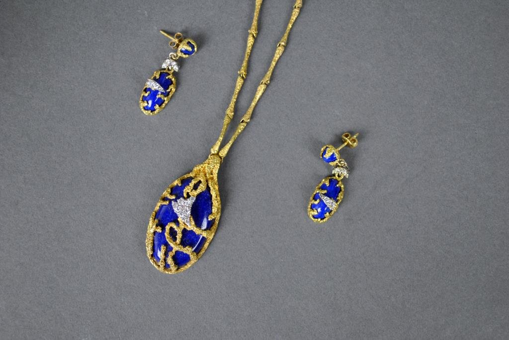 LAPIS & DIAMOND LAVALIER & EARRING SET
