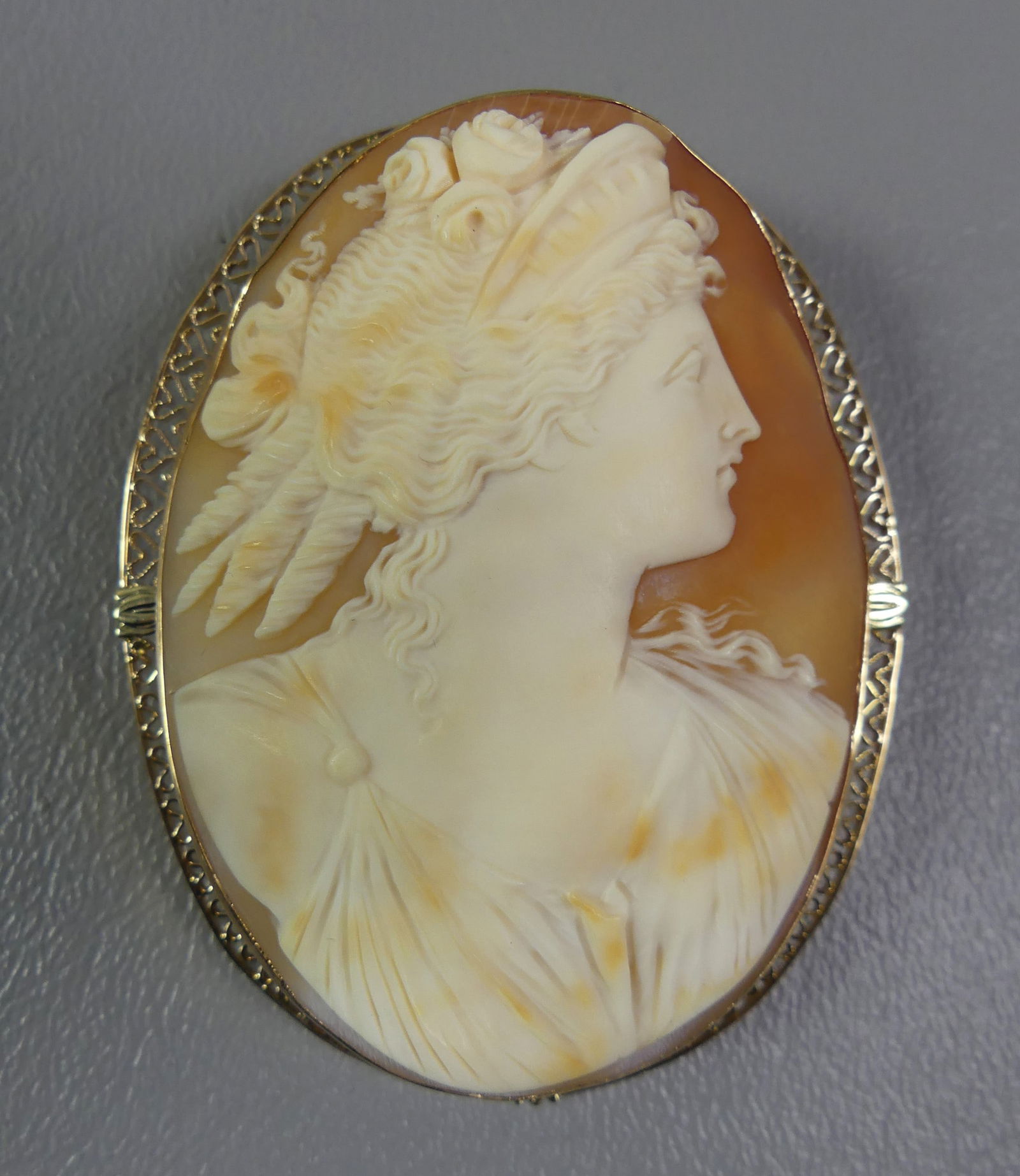 LARGE 14K SHELL CAMEO PENDANT / BROOCH