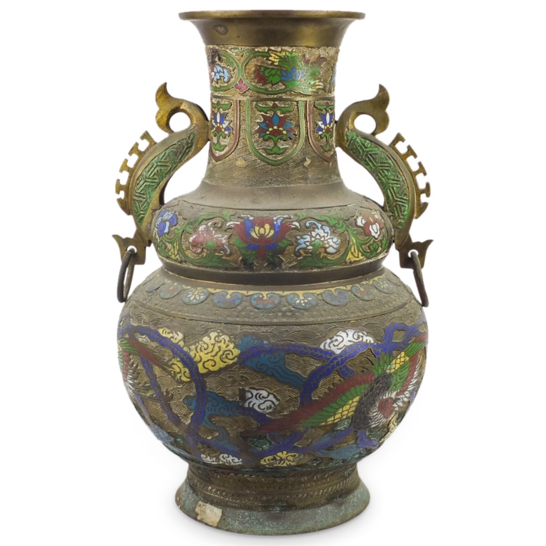 Large 19th C. Japanese Champlevé Bronze Vase