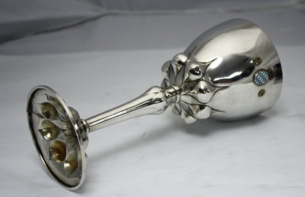 Large 830 Silver German 19th C. Chalice Crest Cup