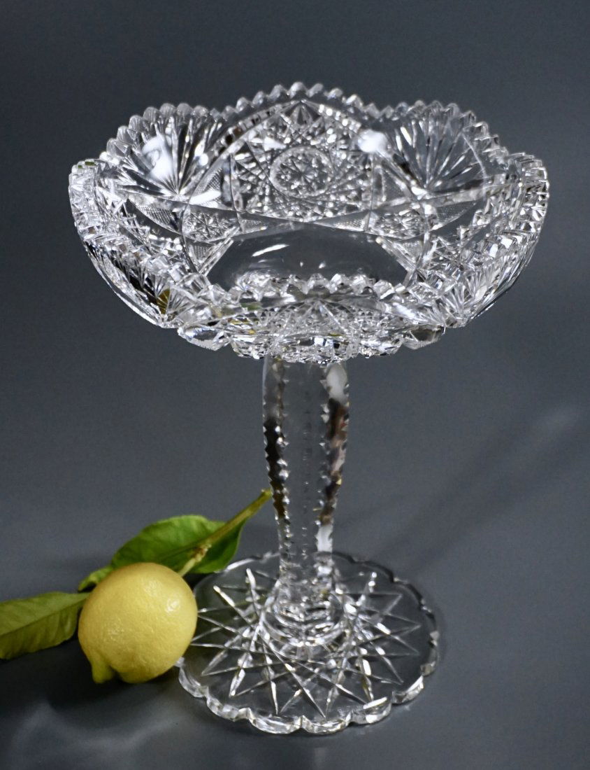 Large ABP Antique Crystal Compote Faceted Stem