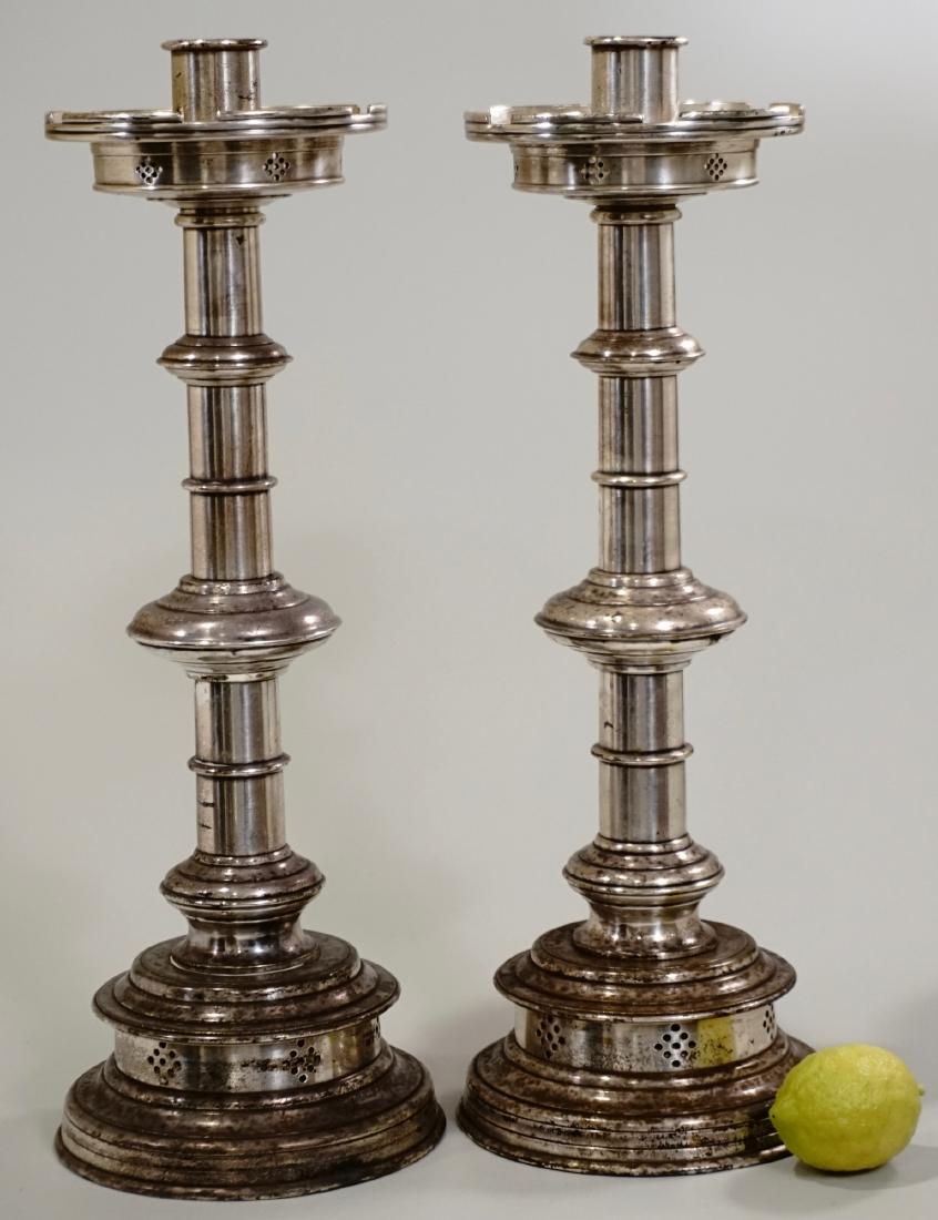 Large Altar Church Candlesticks Pair Gothic Silver
