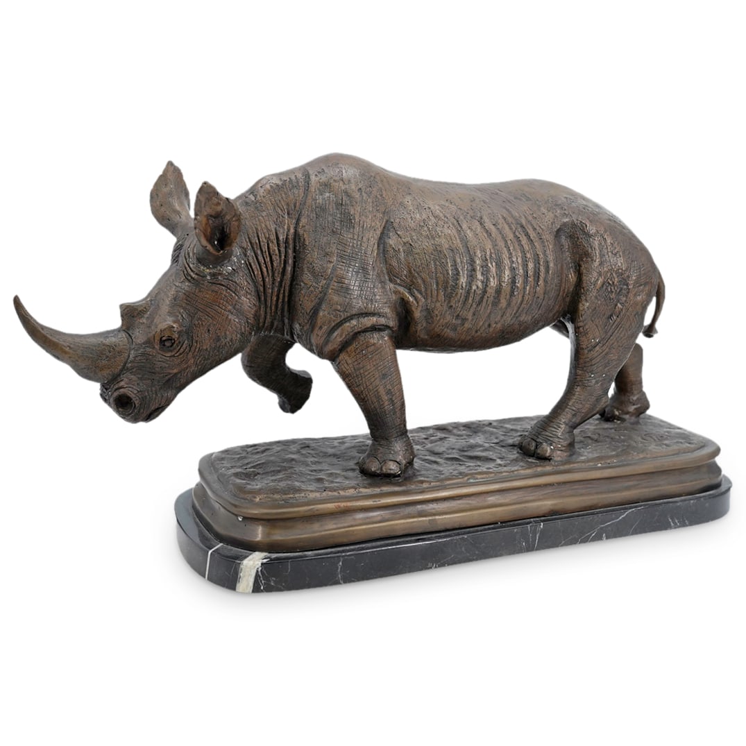 Large Animalier Rhinoceros Bronze, Initialed
