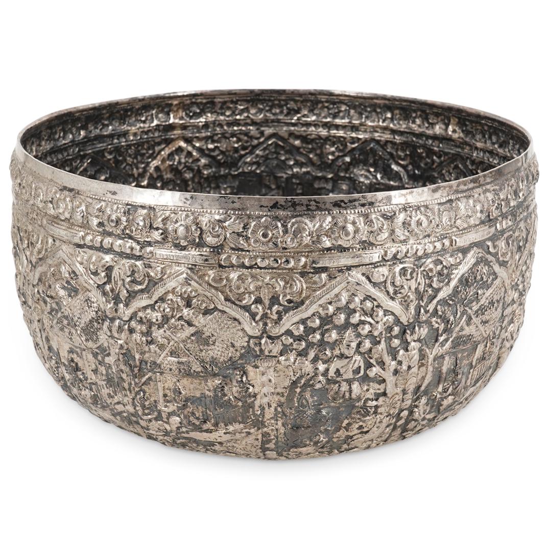 Large Antique Burmese Repousse Silver Bowl