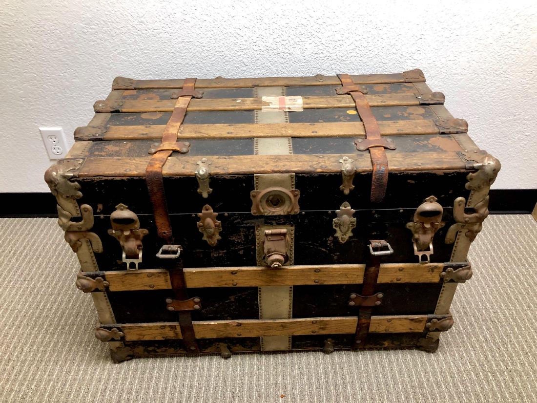 Large Antique Steamer Trunk with Leather Straps
