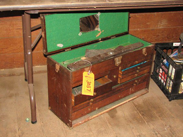 LARGE ANTIQUE TOOL CHEST WITH MULTIPLE DRAWERS, T