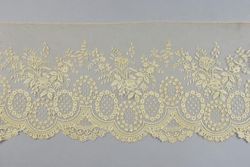LARGE APPLIQUE LACE on NET FLOUNCE, 19th C