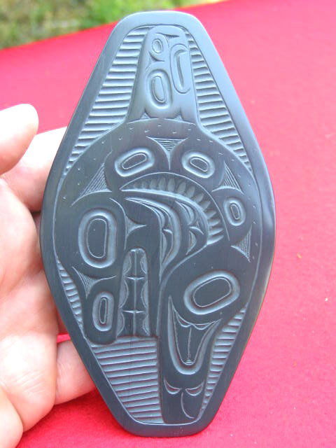 Vintage Calvin Bell Haida Carved Argilite Eagle Pendant