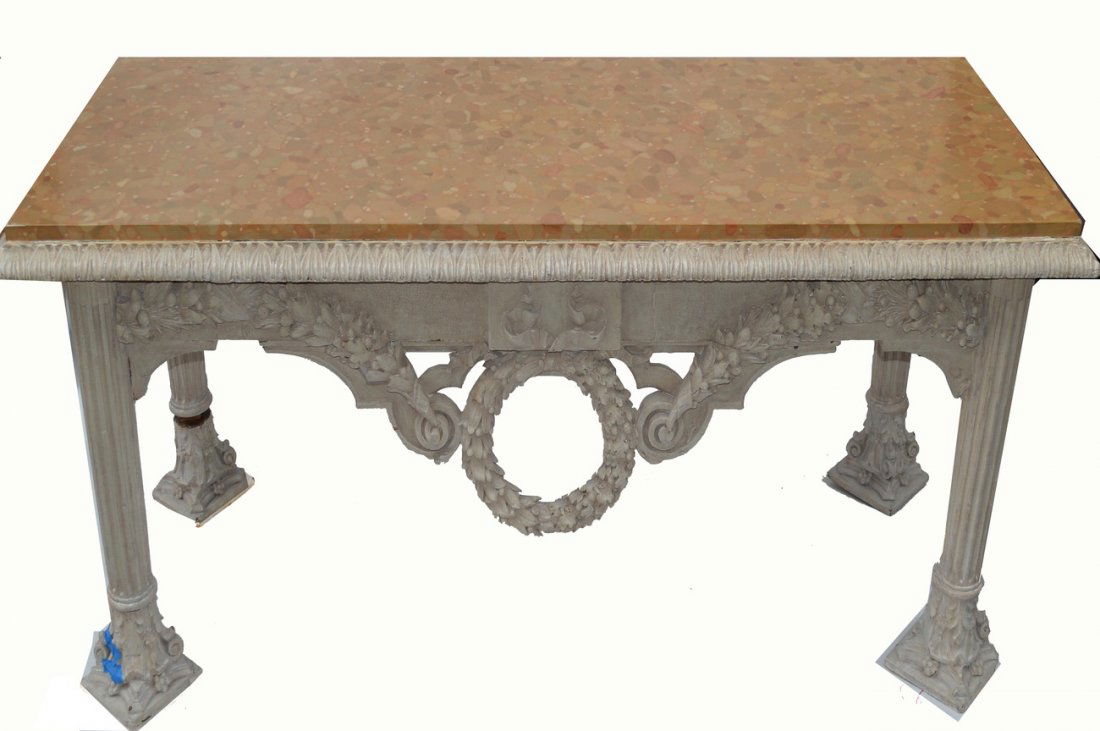 SoldLARGE CONSOLE TABLElate 20th century; wood and composition; 90 inches wide; 24 1/2 inches deep; 39 inches highSee Sold Price