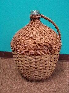 SoldLarge Glass Bottle / Demijohn In Wicker BasketLarge Glass Bottle / Demijohn in Wicker Basket - 27 in tall x 24 inch diameterSee Sold Price
