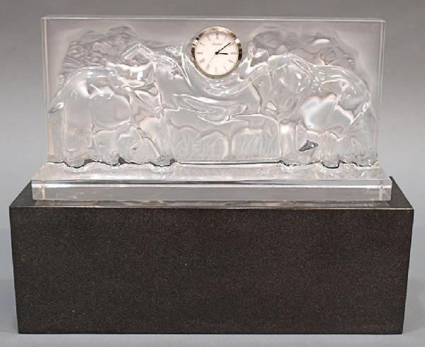 LARGE BACCARAT CRYSTAL RELIEF ELEPHANT CLOCK