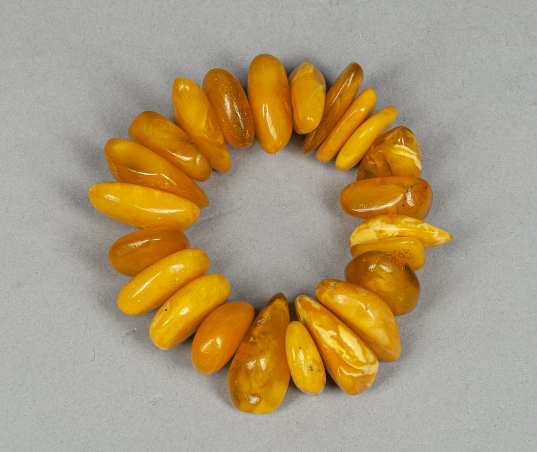 Rare Bijouterie Natural Big Amber Bracelet ArmletSize: Wrist 14-16 cm - Bead Diameter 9-17 mm. Weight 20 g. Materials: Amber. Condition: Excellent. Crafted from large, oval-shaped plant-derived amber beads, this bracelet exudes a timeless elegance aSee Sold Price
