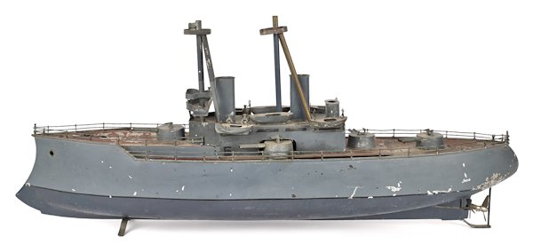 Large Bing tin clockwork battleship, 32'' l.