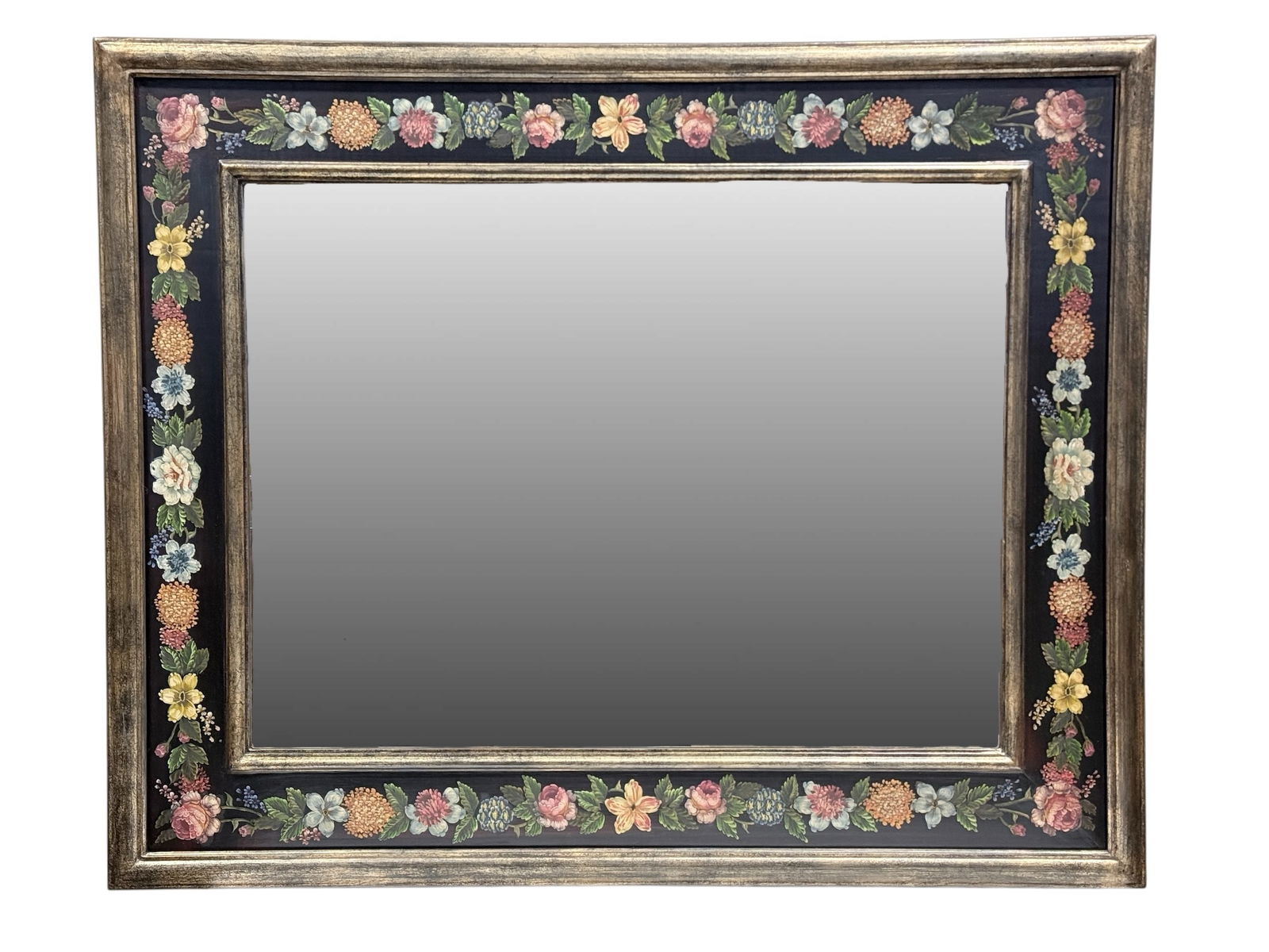Large Black & Floral Design Mirror