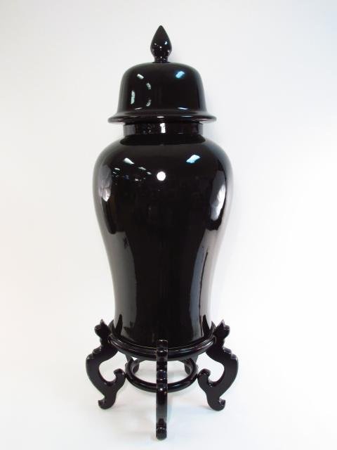 LARGE BLACK GLAZED GINGER JAR W/ STAND