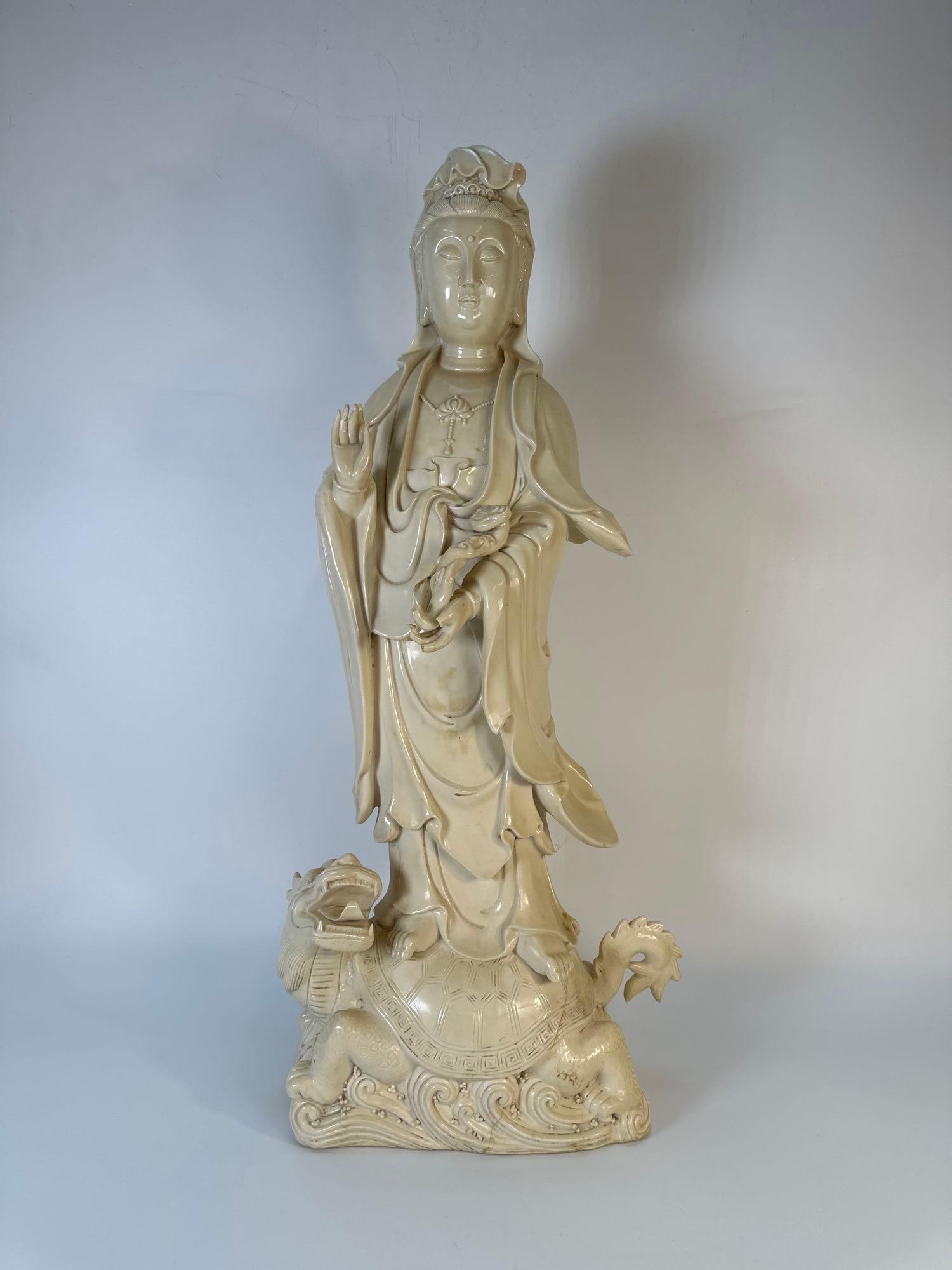 LARGE BLANC DE CHINE FIGURE ON TURTLE