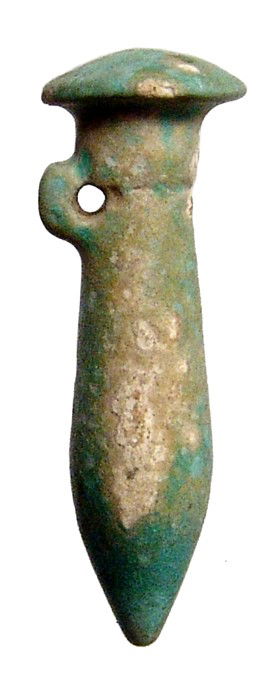 Large blue-green faience papyrus column amulet