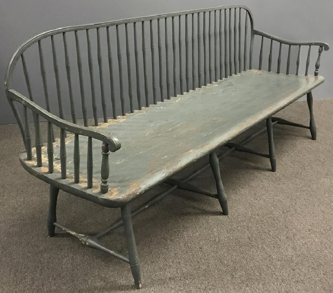 Large Blue Painted Bamboo Turned Windsor Settee