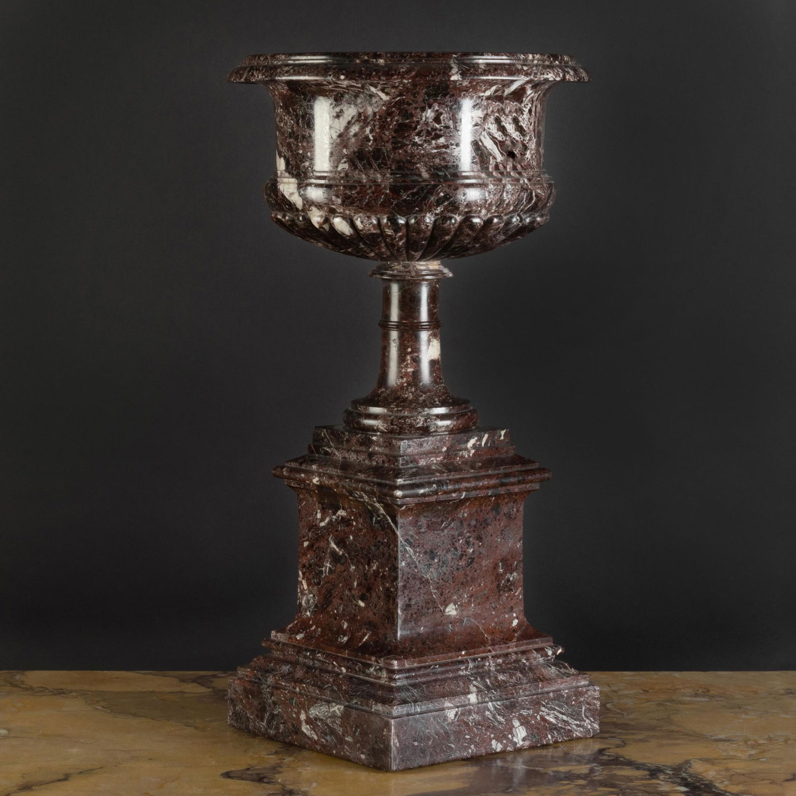 Large Brown Marble Urn on Pedestal