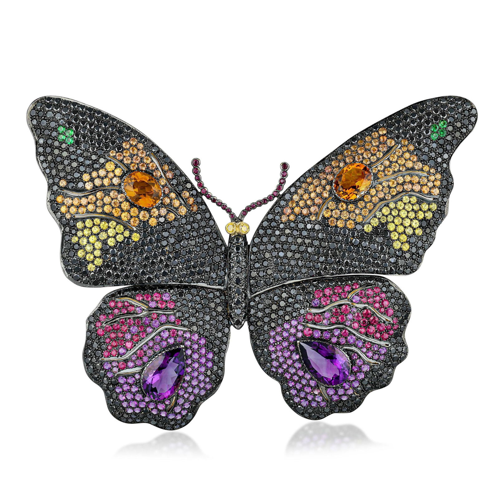 Large Butterfly Multi-Colored Gemstone and Diamond