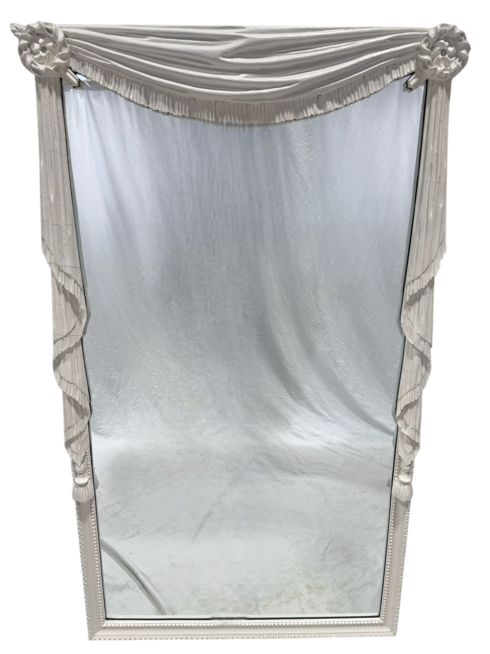 Large Carved Draped Painted Wood Mirror