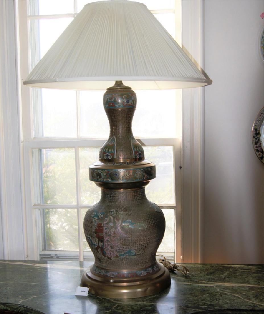 Large Champleve oriental vase turned into a lamp