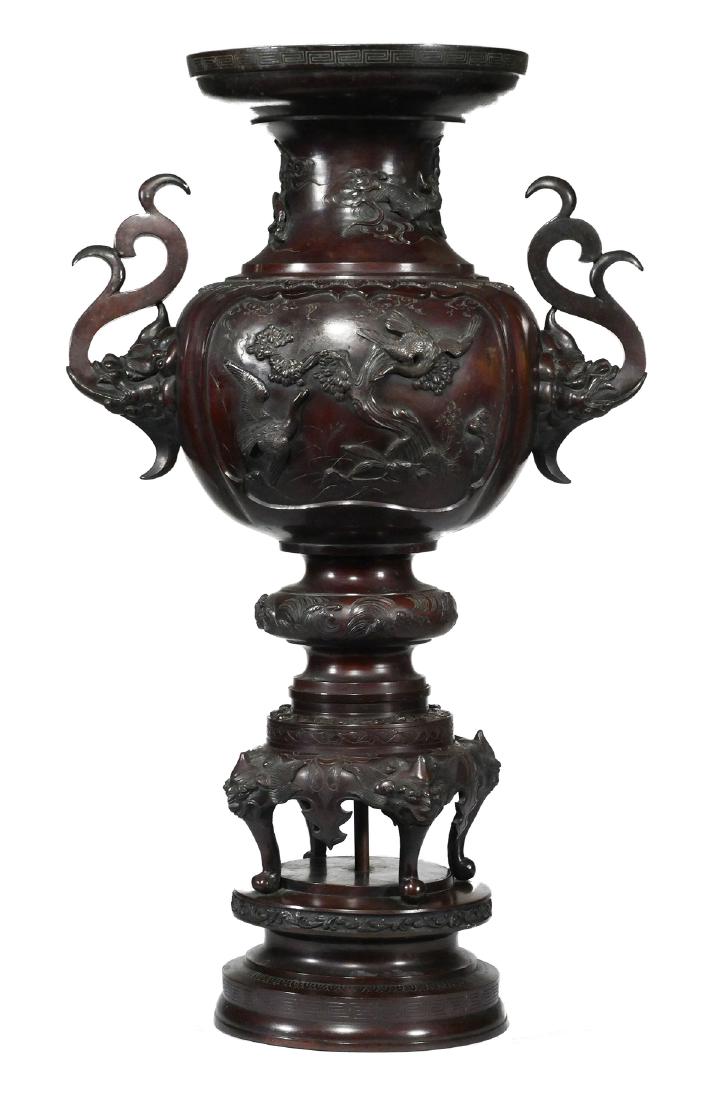 Bronze Censer with Dragon Relief & Qilin Lid5 days LeftVase with cover China, 20th century125 Lots AwayA bronze double dragon standing bird square vase from the Western Zhou DynastyMar 18, 2026Rare Chinese Antique Handmade Pure Copper Vase with Inlaid Gemstones and Double Lion-Dragon HeadMar 11, 2026ANTIQUE CHINESE BRASS FLOOR VASE W/ DRAGON CRANES4 days LeftAn Exquisite Gilt Bronze Auspicious Beast Pattern Dragon-head VaseMar 14, 2026A large Qing Dynasty Bronze Censer With Double Dragon Handles Xuande Mark5 days LeftAn Exquisite Bronze Chi-Dragon Pattern With Inscription Censer1 day LeftAn Exquisite Gilt Silver Dragon and Phoenix Pattern VaseMar 15, 2026ANTIQUE CHINESE BRONZE ? CENSER W/ DRAGONS4 days LeftGilt Bronze Incense Burner with High Relief Dragon Design4 days LeftA Pair of Japanese Meiji Bronze Vases on StandsMar 04, 2026An Exquisite Gilt Bronze Lotus Pattern Flower and Bird Pattern Double-Ears VaseMar 04, 2026A three-legged aromatherapy stove with Qing Dynasty rosewood carved dragon pattern animal earsMar 21, 2026Antique Chinese Bronze Inlaid Gold Double Dragon Ear Vase PotMar 10, 2026A GILT BRONZE TWIN-HANDLED VASE WITH DRAGON AND PHOENIX MOTIFSMar 14, 2026