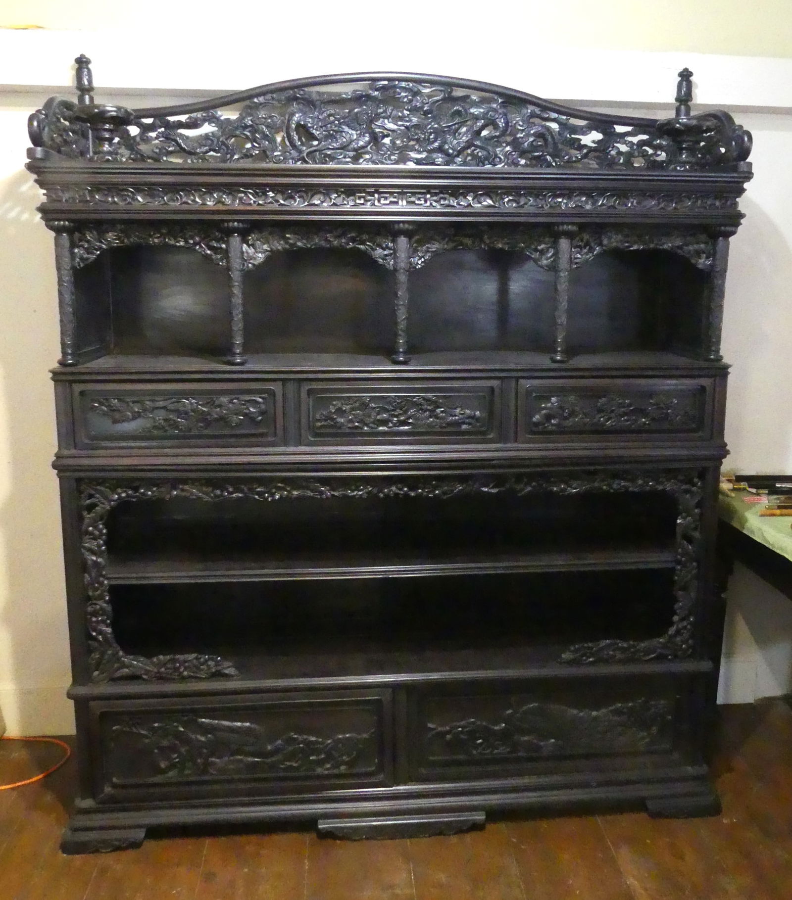 LARGE CHINESE CARVED DISPLAY CABINET