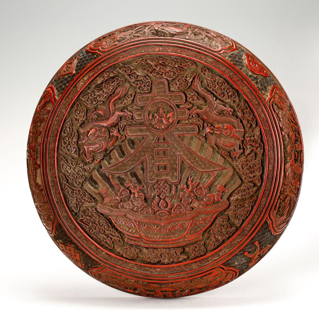 LARGE CHINESE CINNABAR LACQUER COVER BOX