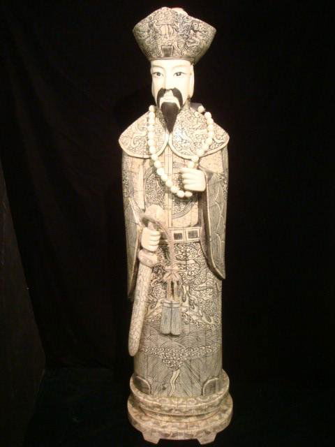 Large Chinese Ivory and Bone Emperor Statue.