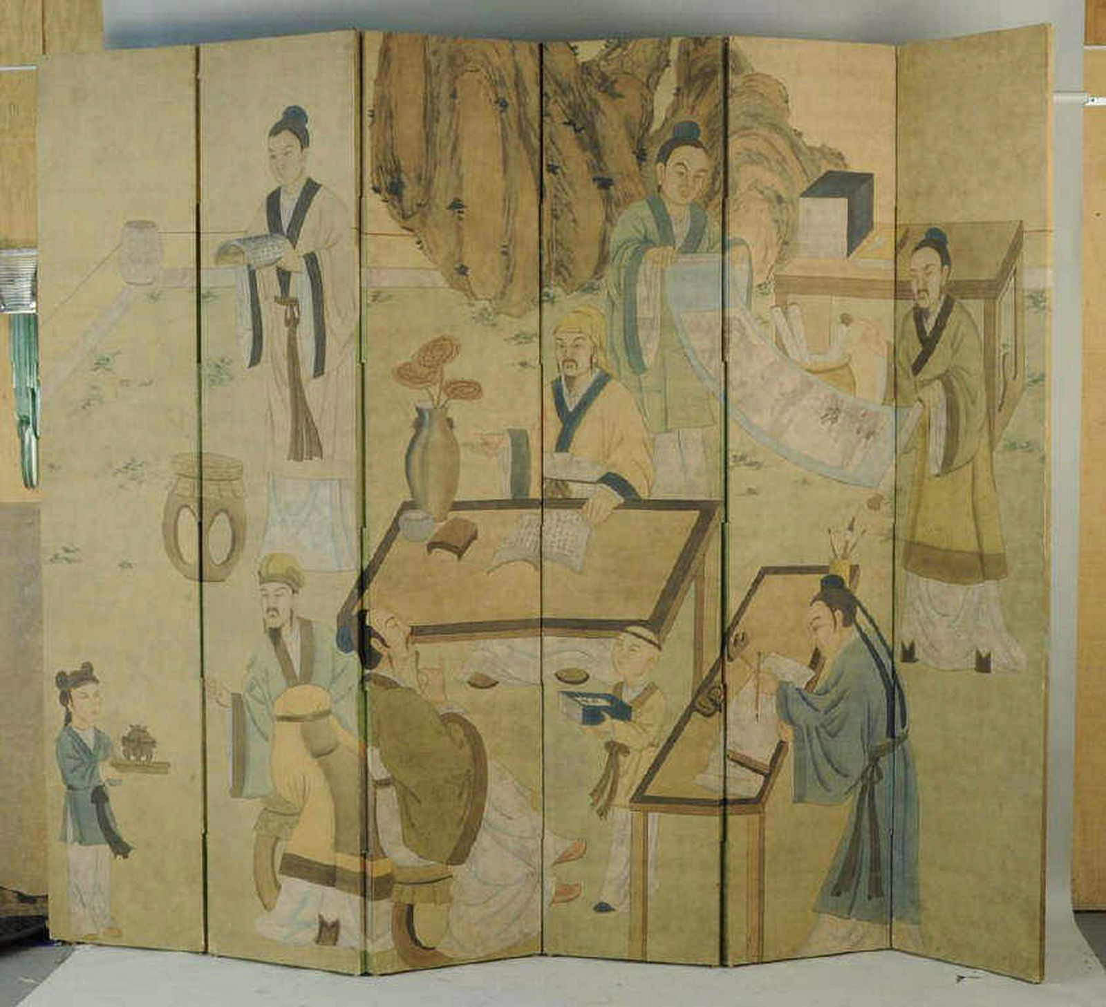 A Pair of Chinese Paintings - Gardens and Pavilions2 days LeftTWO ANTIQUE FOUR-PANEL CHINESE ROOM SCREENS.12 hrs LeftTen-Panel Korean Folding Screen of Calligraphy by Yun Yonggu (1852–1939)2 days LeftA Large Japanese Six-Panel Calligraphy Folding Screen – Signed “Sansh? Koji?? (Ch? Sansh?,20 hrs LeftATTRIBUITO A KANO YASUNOBU 1613-1685 Chinese-style landscapes Edo period164 Lots Away96" Tall Vintage Oriental Lacquer ScreenMar 04, 2026Courtly Elegance Inspired Scroll Painting by Lang ShiningMar 06, 202619th C. Chinese Six Panel Table Screen3 days LeftSu Shi's Fine Ink Bamboo Painting on Paper Screen13 hrs LeftA FIGURE AND NARRATIVE FOUR-PANEL SCREEN (SET) ON SILK BY TANG YIN.唐寅Mar 14, 202672" Tall 4-Panel Vintage Oriental Lacquer Screen956 Lots AwayA Chinese Ink and Color Textile Print, Silk Reeling and Processing, 20th Century, 88FJ3 days LeftA Chinese Ink and Color Textile Print, Rice Hulling, 20th Century, 30FKFeb 24, 2026Kings of Hell torture scene, likely from the tradition of Water-Land Ritual Paintings, China, 17thMar 10, 2026A Chinese Ink and Color Textile Print, Silk Weaving and Drying, 20th Century, 87FJ3 days LeftA Chinese Folding Panels Silk Screen4 days Left