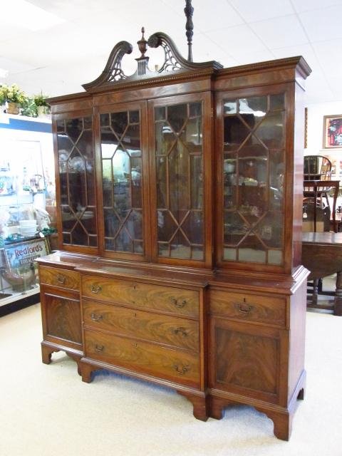 LARGE CHIPPENDALE STYLE FLAME MAHOGANY BREAKFRONT