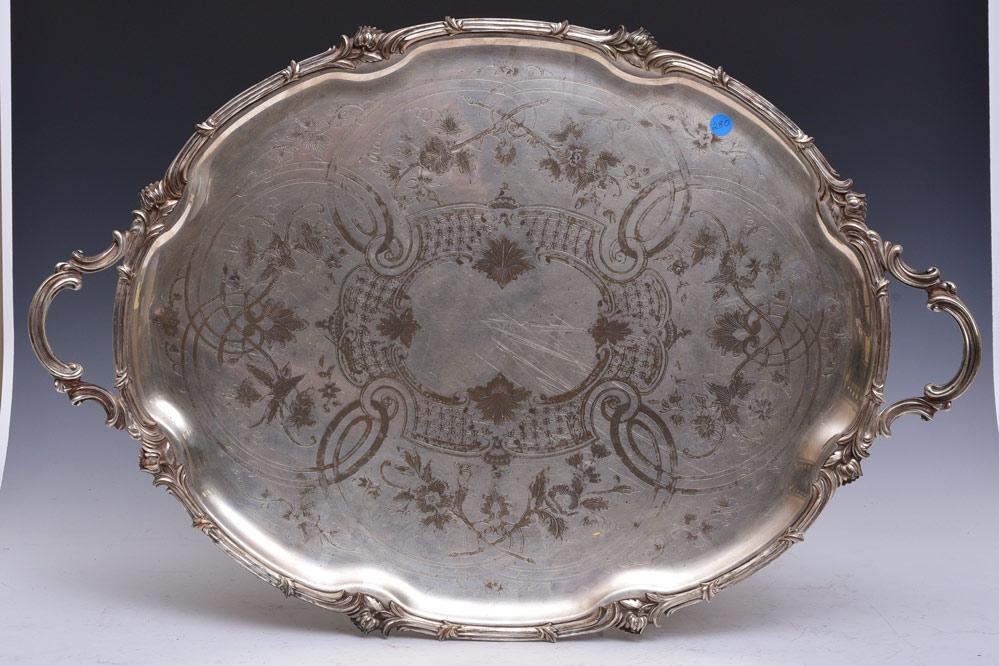 A LARGE 19TH C ENGLISH STERLING SILVER TRAY
