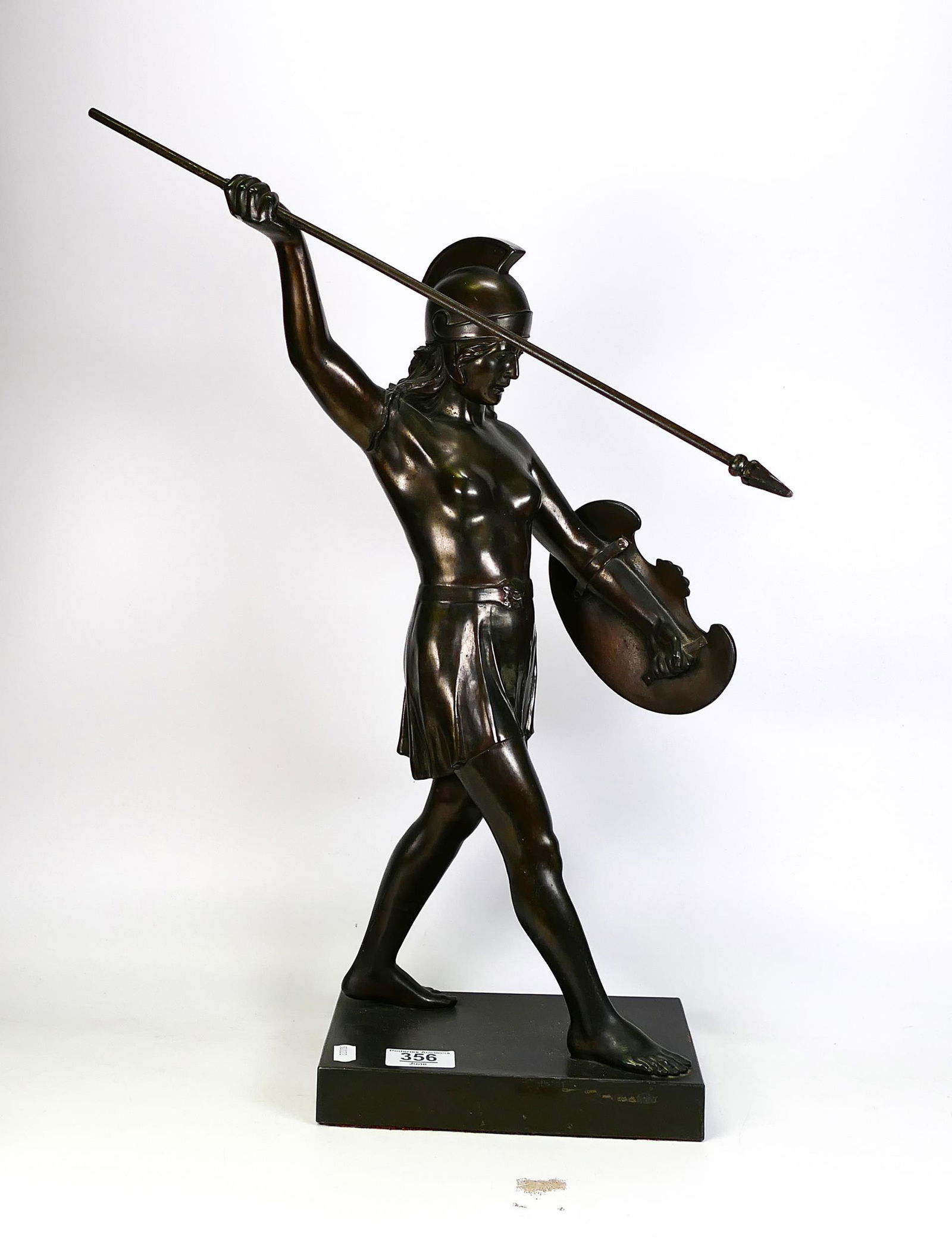 Large Classical Bronzed Spelter Warrior , crack to base, height 55cm