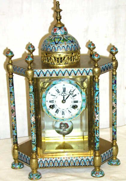 LARGE CLOISONNE SHELF CLOCK