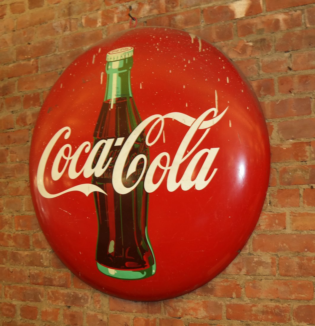 SoldPorcelain Coca-Cola SignLarge round Coca-Cola button sign, porcelain, single sided diameter 36 in. x depth 3.5 in. Provenance: Property from the collection of a San Antonio, Texas gentleman Shipping available for this lotSee Sold Price