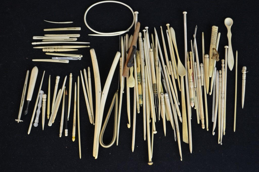 Large Collection -19th C Knitting & Sewing Items