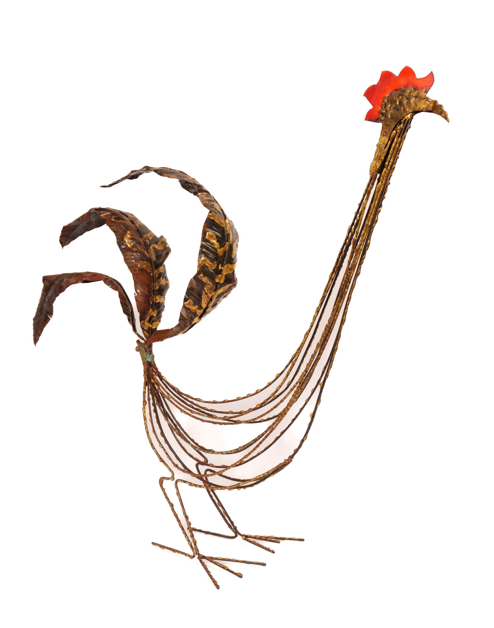LARGE CONTEMPORARY WIRE ROOSTER SCULPTURE.