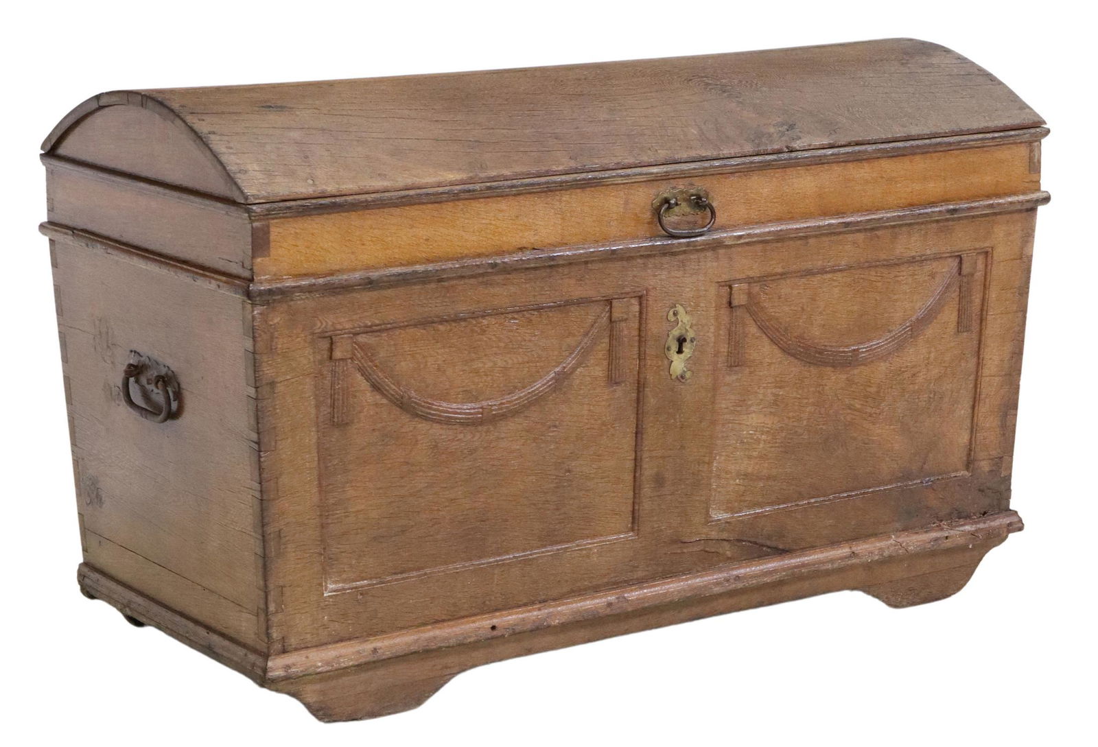 LARGE CONTINENTAL OAK DOME-TOP COFFER, 18TH C.