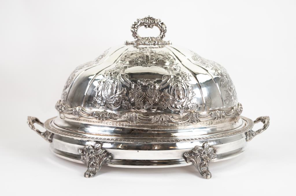 An English Old Sheffield plate serving dish, finial silver marked for Paul Storr, London, circa 183023 hrs LeftMexican Sterling Silver Covered Tureen with Ladle by SanbornsMar 08, 2026SILVERPLATED DOMED GAME COVERMar 06, 2026French Art Deco Sterling Silver Tetard Freres Tureen Set with MonogramMar 12, 2026LARGE ANTIQUE GERMAN 830 SILVER CENTERPIECE CRYSTAL BOWLMar 07, 2026TIFFANY & CO STERLING CENTERPIECE, 43 T.O.W.Mar 07, 2026Victorian Sheffield Silver Plated Well Tree and Meat Dome circa 1870402 Lots AwayT and J Creswick Victorian Silverplate Turkey Dome 21x15 with Engraved Crest3 days LeftFrench Silver Center BasketMar 14, 20261900 Gorham Art Nouveau Sterling Silver Oval Center Piece3 days LeftVintage F B Rogers Silver Plate Centerpiece Bowl Made in SpainRococo Style Silver Plate Coffee And Tea Set (7-piece), C. Mid-late 20th Century2 days LeftFive-Piece Silverplate Serving GroupMar 07, 2026Beautiful Silver Bowl With Lid And Underplate2 days LeftAntique 19thC Large Sheffield Silver Plate 2-Piece Meat Dome Over Footed PlatterMar 29, 2026Irish George II Sterling Silver SalverMar 16, 2026