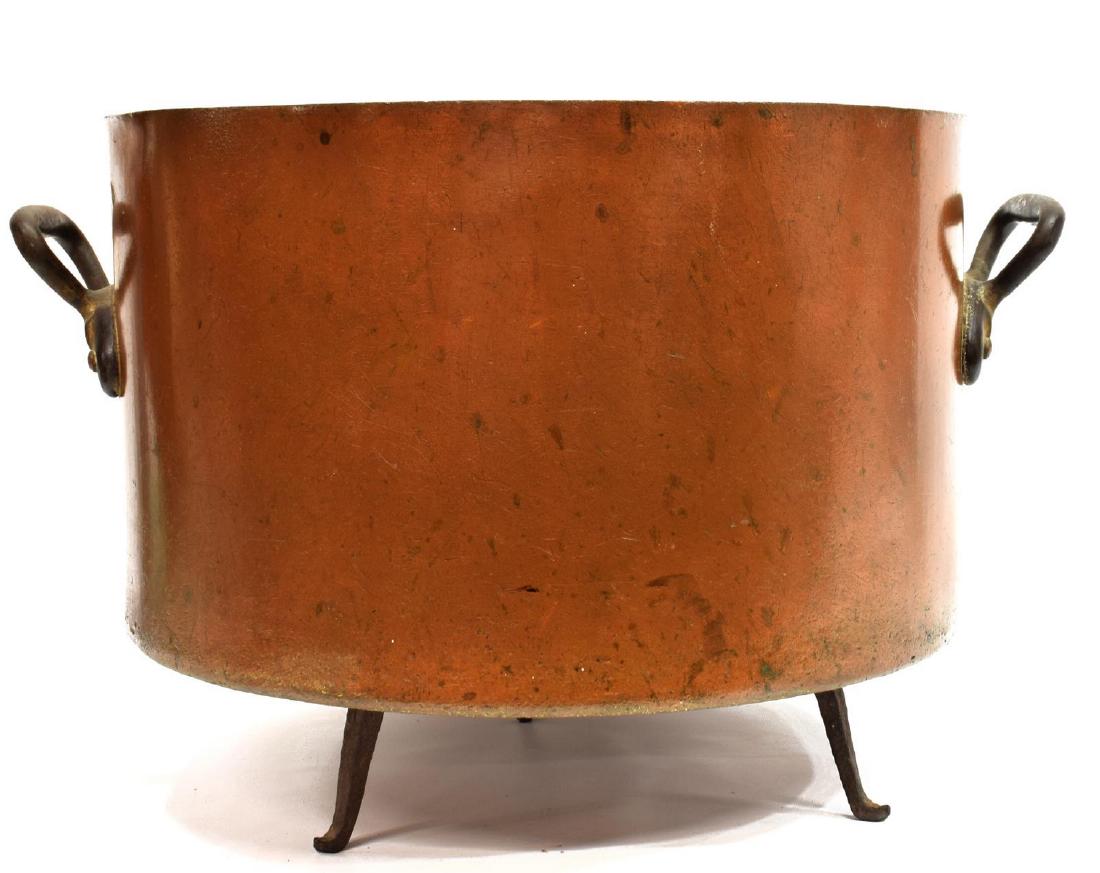 LARGE COPPER CAULDRON ON IRON STAND, 12.5"H