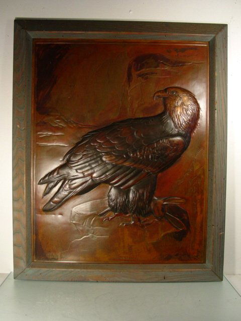 LARGE COPPER PLAQUE GOLDEN EAGLE WITH PREY