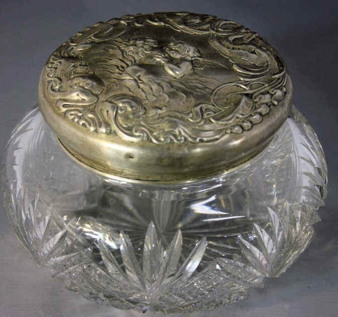 Vintage Silver Plate Jewelry BoxMar 10, 2026Antique Continental Silver Cherub & Insect .863 Fine Silver Trinket Box8 mins LeftAntique Cut Crystal Vanity Jar w/ Sterling Silver Repoussé Floral Lid c.19005 days LeftANTIQUE CUT CRYSTAL STERLING SILVER DRESSER JAR 6"Mar 09, 2026Cut Crystal Biscuit Jar with Sterling Silver LidMar 15, 2026Baccarat Crystal Patch Box with Psyche Sulfide Cameo 1840-18602 days LeftPowder Box, American Brilliant Cut Glass, Heart Pattern With Nailhead Diamond Center7 days LeftAntique Continental .800 Silver Dresser BoxMar 28, 2026Cut Crystal Jewelry casket23 hrs LeftSterling silver accessories. 1) English sterling silver tray and inkwell. 9in wide. Tray: 6.7 ozt.23 hrs LeftSquare Dresser Box, American Brilliant Cut Glass, Signed Tuthill Cosmos Pattern7 days LeftSterling silver covered cut glass humidor. Thistle pattern cut glass decoration. Sterling cover with23 hrs LeftVINTAGE GORHAM STERLING SILVER PEDESTAL DISH 300GMar 09, 2026Signed Marialyce Hawke Etched Glass Nude Figural BoxMar 07, 2026Antique Miracoli .800 Silver Trinket Box Ornate4 days LeftC.F. Monroe Wavecrest & Sterling Cut Glass Ferner23 hrs Left