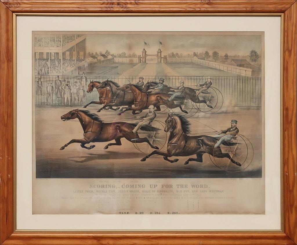 Large Currier & Ives Lithograph "Scoring"