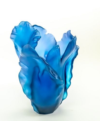 Large Daum Crystal Tulip Vase-Blue with Original Box