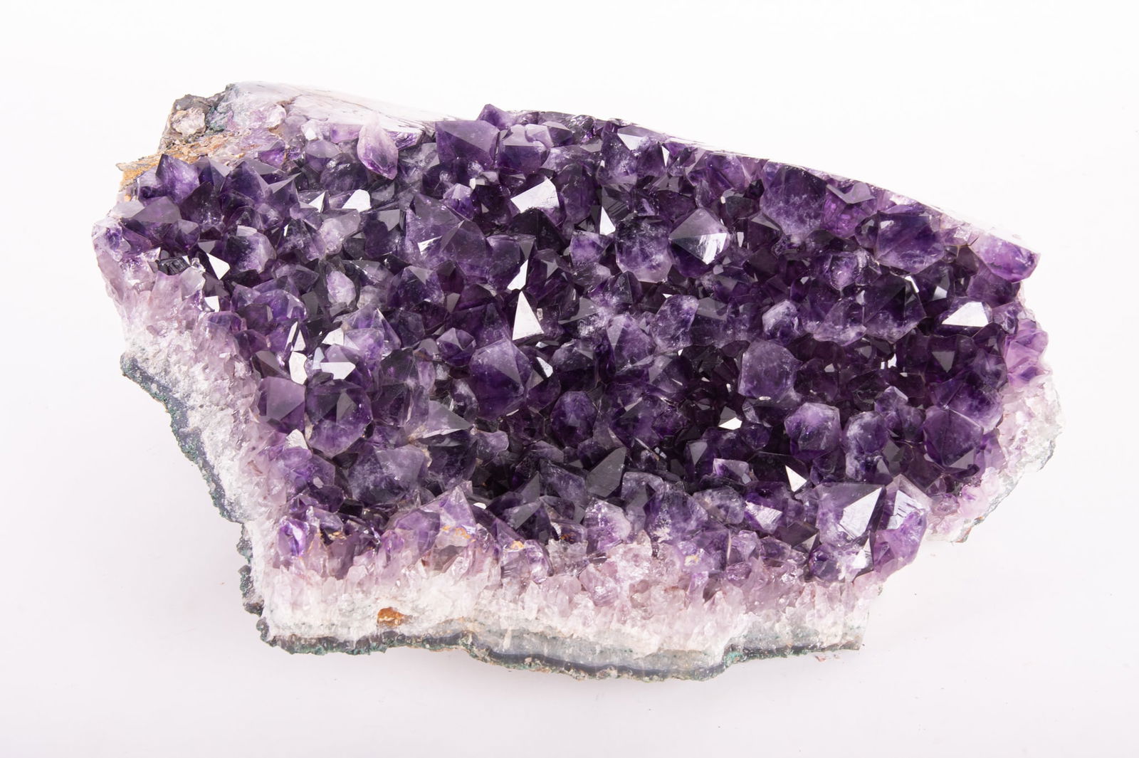 Large Crystal Cathedral Amethyst Geode SpecimenDESCRIPTION: Crystal cathedral geode heavily dusted with natural, deep purple, crystal points. Bottom of piece shows cross section of stone from which formations extend. ORIGIN: Brazil DIMENSIONS: H:See Sold Price