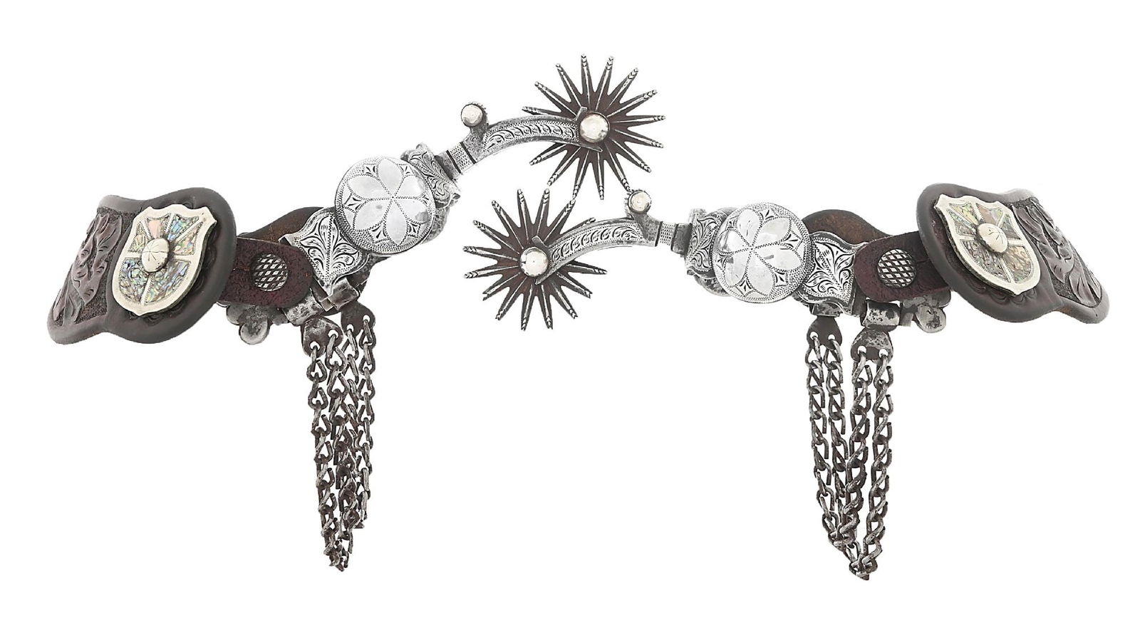 LARGE DOUBLE MOUNTED SILVER INLAID SPURS