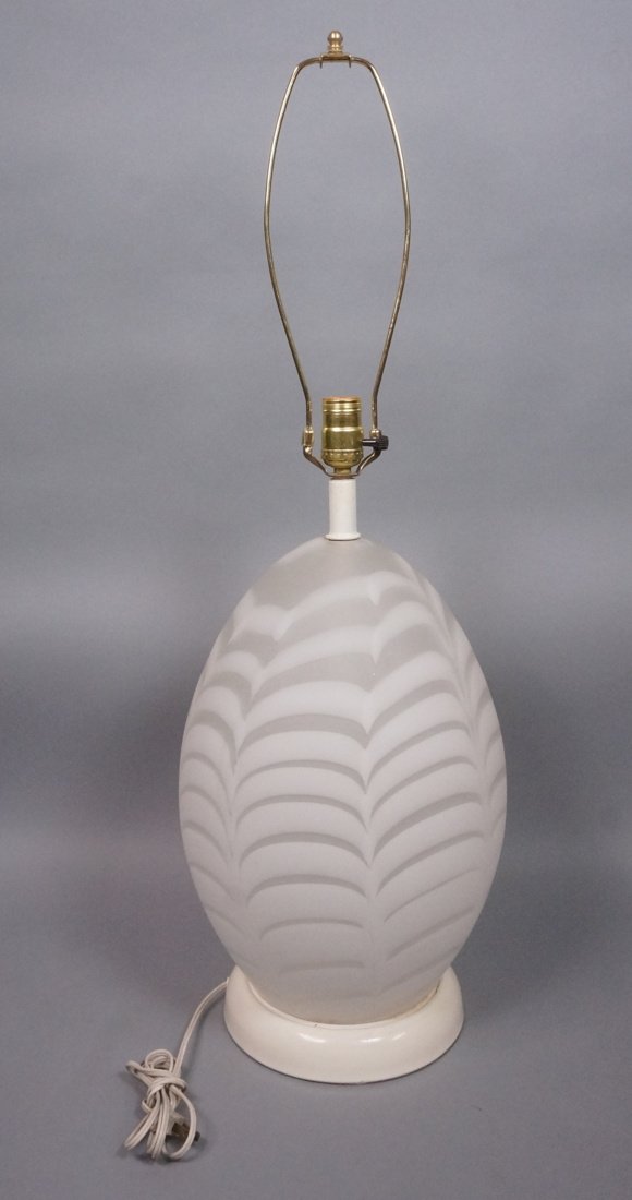 Large Egg Form Murano Glass Table Lamps. Pulled t