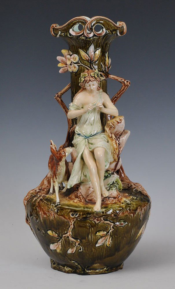 Large Figural Majolica Vase