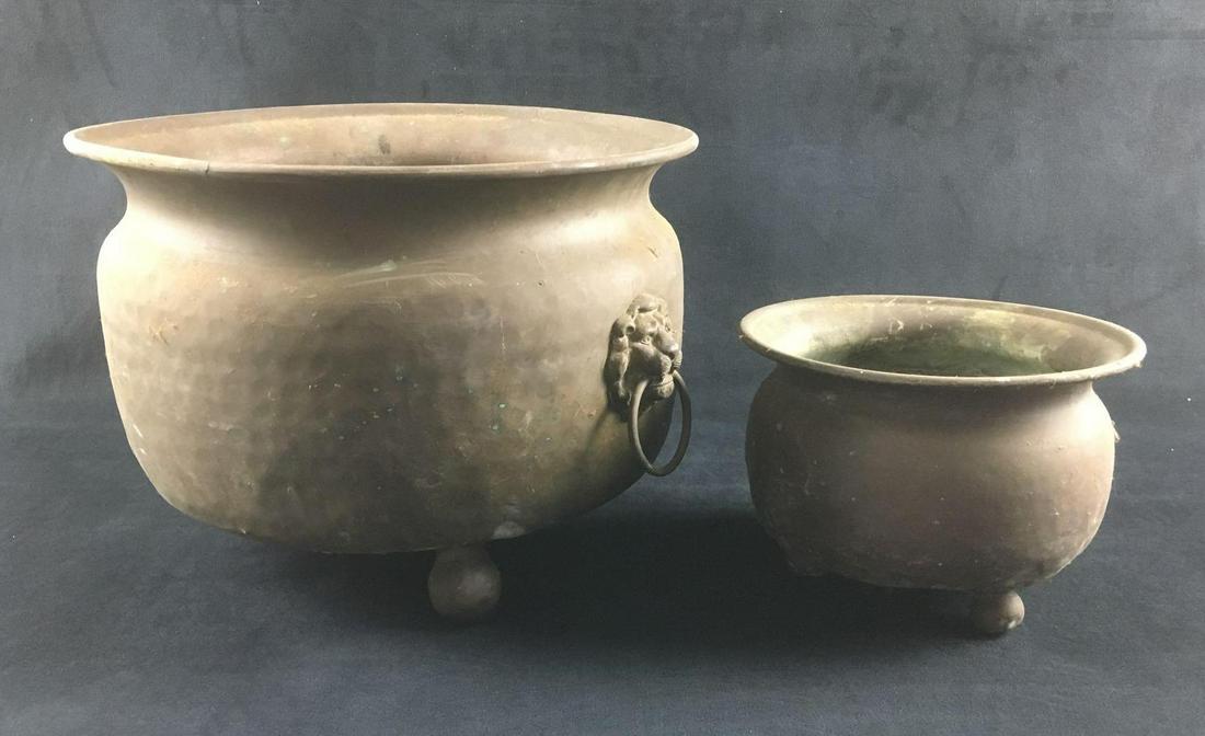 Lot of Antique Metal ItemsMar 26, 2026ASSORTED CAST-IRON HEARTH COOKING KETTLES / CAULDRONS, LOT OF FOURMar 06, 2026LOT OF TWO COPPERWARE PIECES WITH BRASS HANDLESMar 07, 2026Hand Forged English Copper and Brass Handled Coal Scuttle w/ Hammered Copper Jardiniere/CauldronMar 16, 2026A PAIR OF 'RED RAJA' TWIN-HANDLED BRONZE POTS, 19TH CENTURYMar 11, 2026Two Antique Earthenware Vessels, One Incised "APK"4 days LeftLate Victorian Hand-Hammered Copper Cauldron PotGroup of Decorative Household Vessels, Brass Urn and Porcelain Chamber PotMar 07, 2026COPPER VESSEL W/ HANDLE , COPPER POT5 days LeftPair of Antique Copper Mixing Bowls with Brass Handles6 days LeftLots Chinese bronze potsMar 05, 2026A BRONZE VASE AND A BRONZE EWER AND COVER Ming Dynasty (2)Antique Arts & Crafts Handwrought Gadrooned Copper PotMar 17, 2026Hammered Metal Planter with Elephant FeetMar 05, 2026A pair of fine bronze jar vases with inscriptionsMar 22, 2026Antique Chinese Bronze Handled Pot OrnamentMar 10, 2026